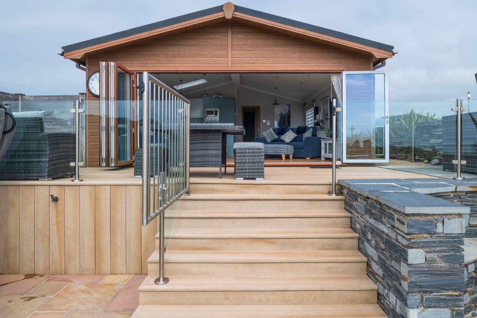 Seaview Holiday lodge provides a large open-plan living, dining & kitchen area with wood-effect floor throughout and skylights with rain sensors which are electrically operated from a control in the lounge.